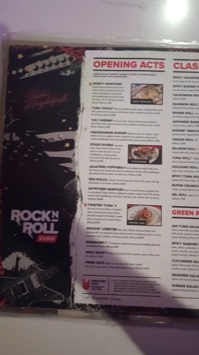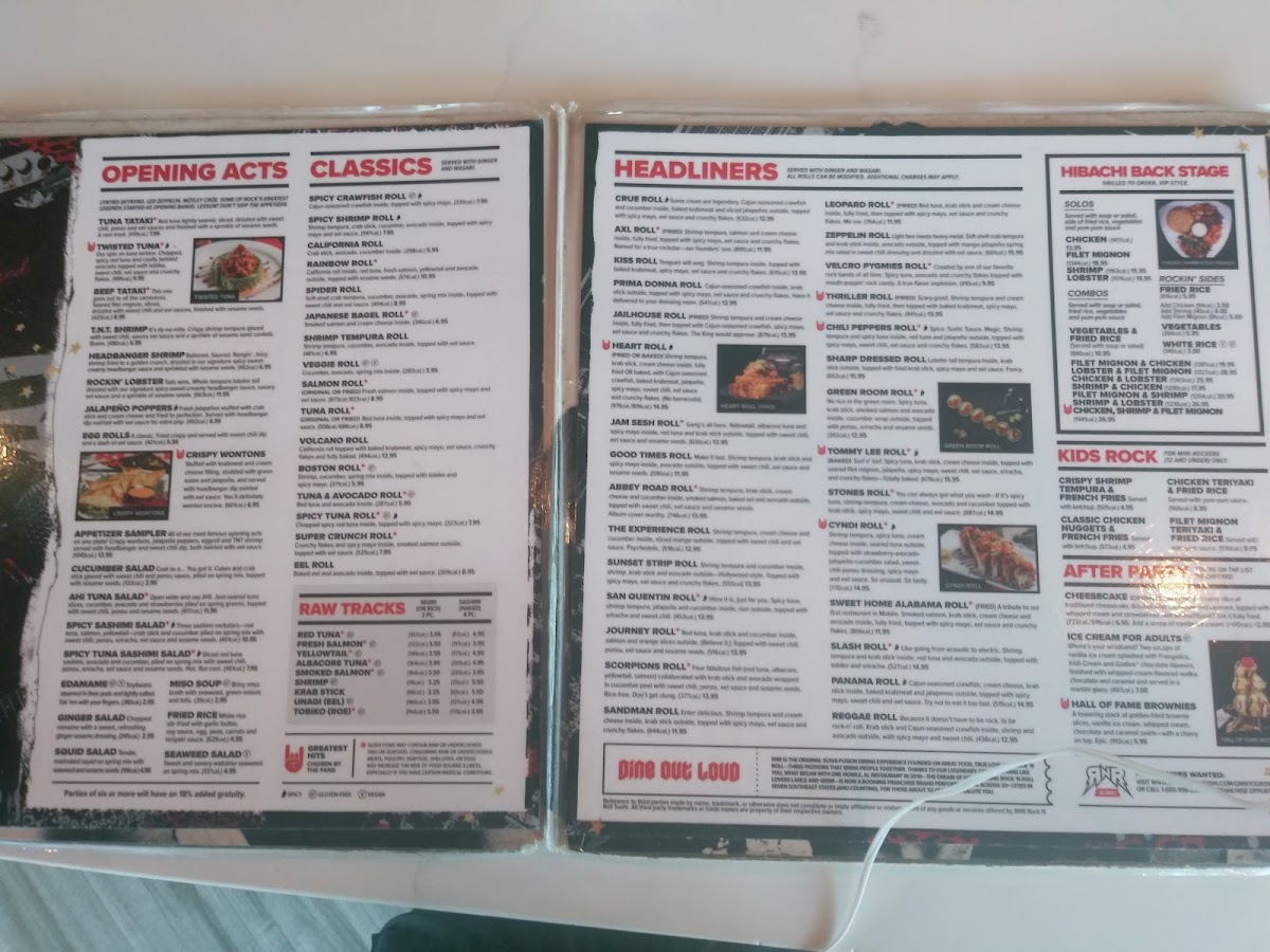The Experience Roll, Punk Rock Roll, Crowd Surfer Roll, Rocked Lobster Roll, Tuna Roll, VIP Roll (Baked)